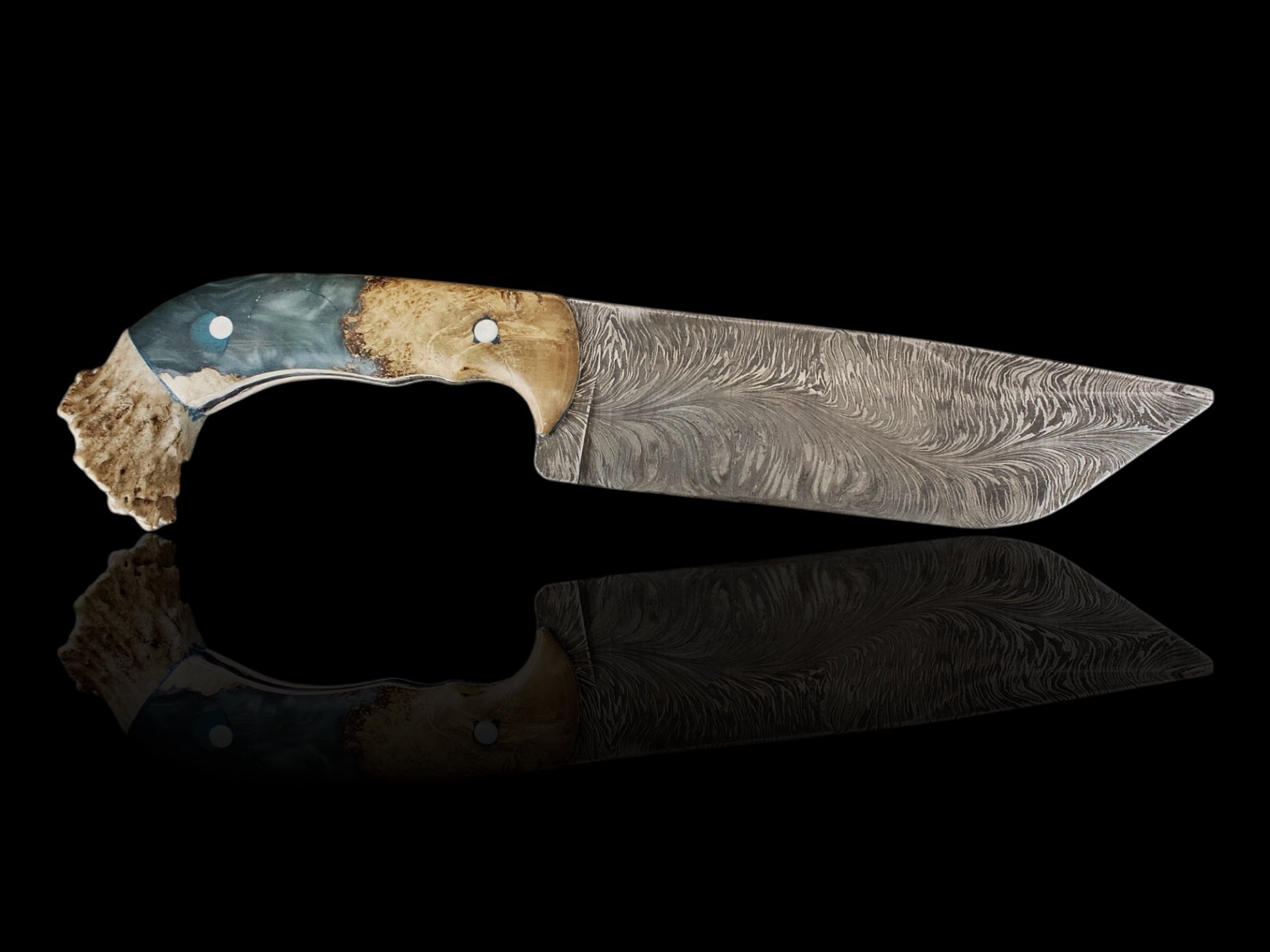Custom Knife | Wood | Epoxy | Damascus Steel
